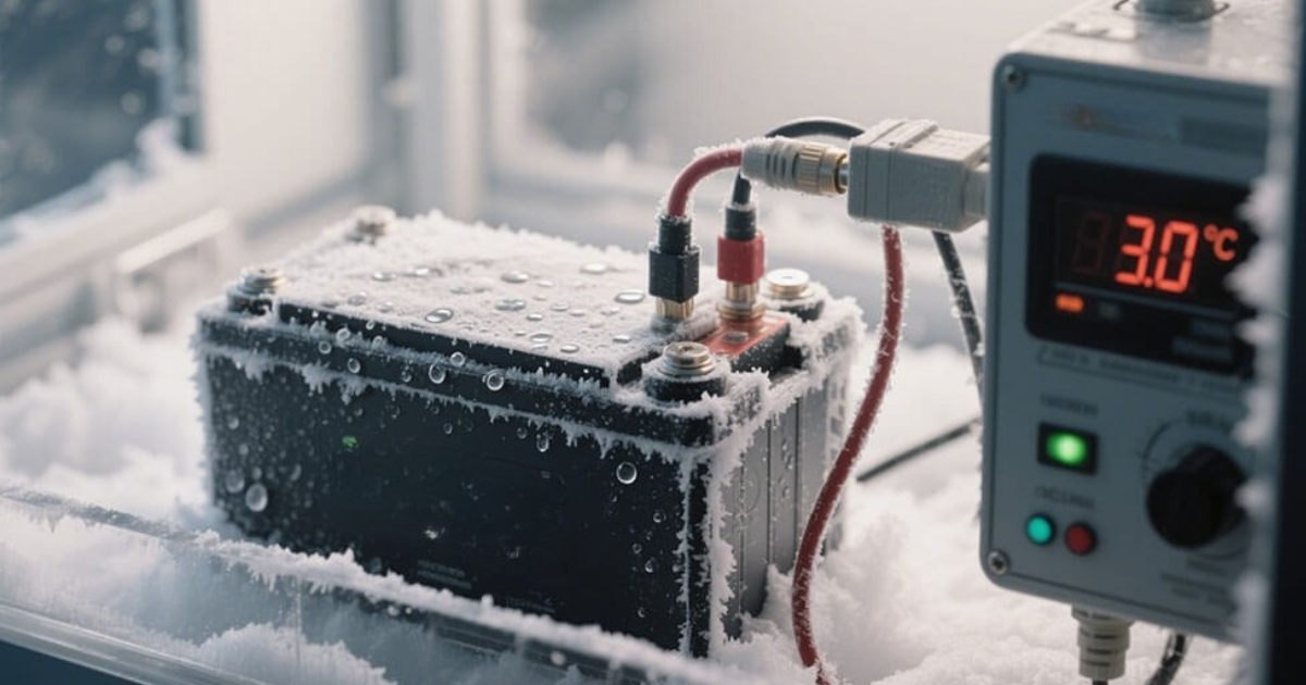 - Высокая или низкая температура. Разные аккумуляторы по-разному реагируют на температуру, но все они в основном не переносят холод. Так, свинцово-кислотные при падении температуры ниже 0 °C теряют около 15 % емкости, ниже -20 °C – около 50 %. Но если температура становится выше 25 °C, то это может привести даже к увеличению емкости примерно на 5 % (но подогревать такие аккумуляторы специально для повышения емкости запрещено!). Литий-железо-фосфатные АКБ могут терять около 20 % емкости при падении температуры до -20 °C. В таких условиях возможен только разряд. Согласно инструкции по использованию АКБ, заряд литий-железо-фосфатного аккумулятора должен осуществляться при температуре выше 5 °C. Жара почти не влияет на их емкость, но снижает ресурс, если становится больше 45 °C.